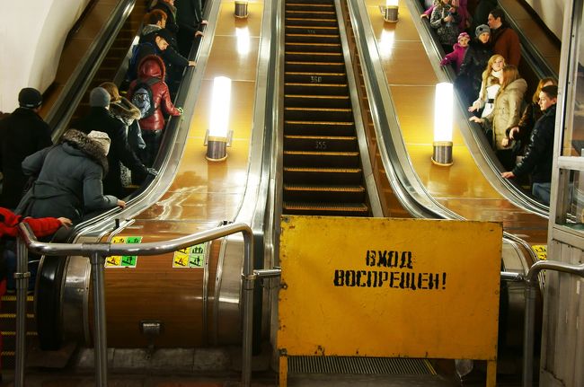 キエフ駅のプラットホーム。おっさんに笛吹かれました。