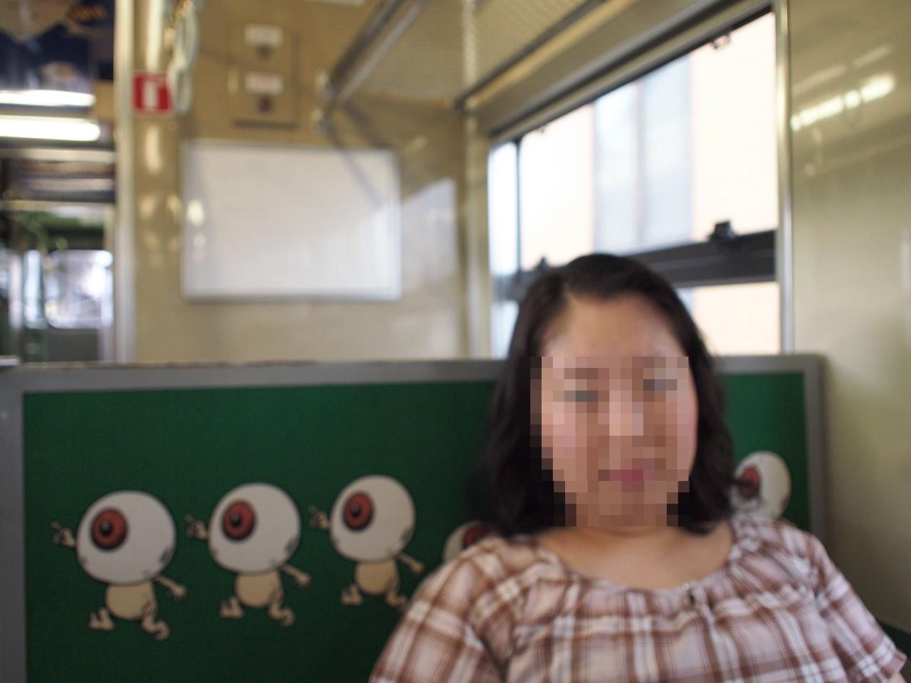鬼太郎電車にも乗れたことだし、貴重な妖怪電車の乗車体験を楽しみますよ! ちなみに、この後何度かラッピング電車乗りましたけど、社内のアナウンスが鬼太郎とねこ娘の声だったのは、この時1回だけでした。 -