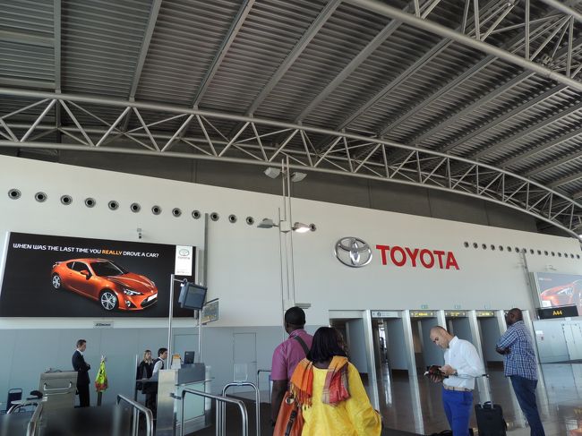 ブリュッセル空港内の出国後の通路にTOYOTA車が展示されていました