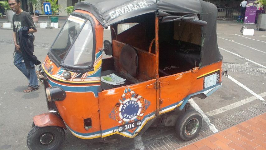 バイク式三輪車。地元民の交通手段はバイクが中心。渋滞が激しいからでしょうか?路線バス用に専用道路が設けられていました。