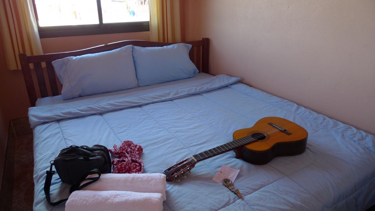 ノーンカーイからおんぼろバスで7時間 そこからソンテウに乗り換えチェンカンの街へ行き 重い荷物を背負って歩いて1Km程でやっとネットで調べたゲストハウスに着く (その間他の小奇麗なゲストハウスで値段を聞くが1000B〜1200B) ネットでこのゲストハウスを紹介してくださったmasamuneさんありがとうございました この場を借りて御礼申し上げます