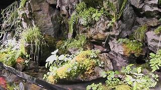 山の雪どけ水がゆっくりとろ過されていくような手つかずの自然の中で、ひっそりとくらすオオサンショウウオやアマゴ。鴨川上流の風景をリアルに表現するために、岩の間からしみ出る岩清水、砂の間からわき出る湧水、苔の間を流れ出る滴の3種の水を再現しました。 -