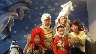 スタジオアリスでは、こんな楽しい魚の帽子をかぶって記念写真が撮れます。1枚1,000円で、自分のカメラでも撮影してくれますので必ずしも買わなくてもいいのですが、ここまでしてもらって買わないわけにもね〜…。