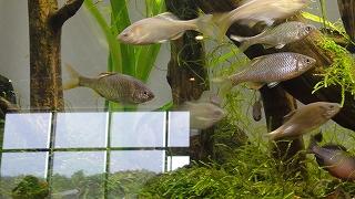 ガラス越しに魚たちの培養?を見たり、