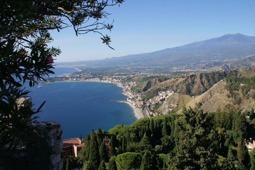 右側にはシチリアのシンボル、エトナ山がきれいに見えた。