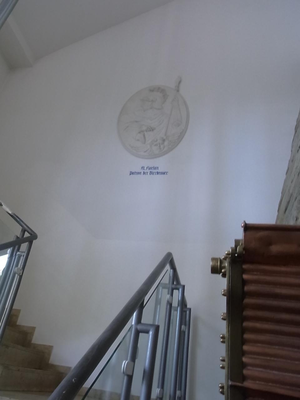 階段の壁にローマ兵?みたいな浮き彫りがある。