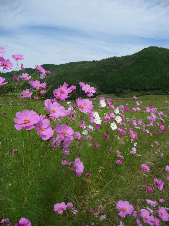 柳生の里のコスモスはほとんどが3種類の色の花でした。