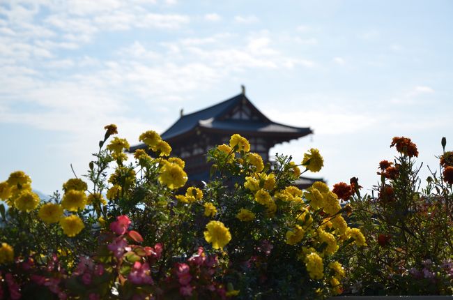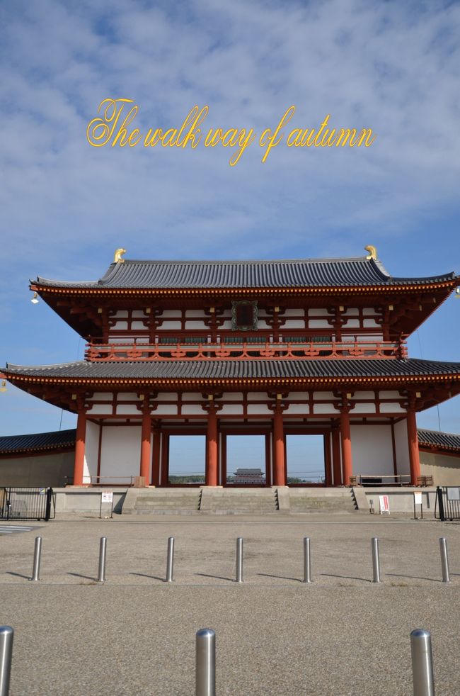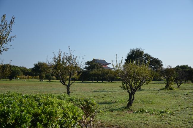 今朝起きたとき、寒いと感じましたが外は雲一つ無い快晴。カメラを持ってで掛けることにしました。用があったので西大寺駅前経由で平城宮祉へ。朝8時半から平城宮祉の無料駐車場が開きます。駐車場に車を止め、カメラを持って広い平城宮祉を歩く事にしました。北の端から南端にある朱雀門まで徒歩で30分くらいかかります。資料館の前を通り舗装された道を南へテクテク歩きながら深まり行く秋を感じました。