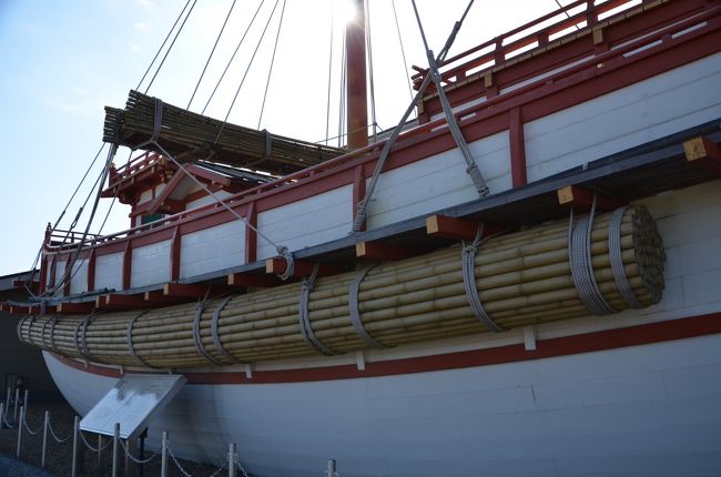 「遣唐船」の復元模型の所に来ました。横には資料館があります。前で写真を撮っていると建物から女の人が出て来て入館を進められましたが入りません。入館料500円。
