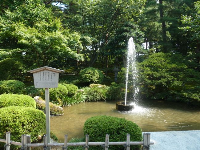 兼六亭の前に日本最古といわれる噴水があり、源は公園内の霞ヶ池で、自然の水圧で水を3m以上も吹き上げる。