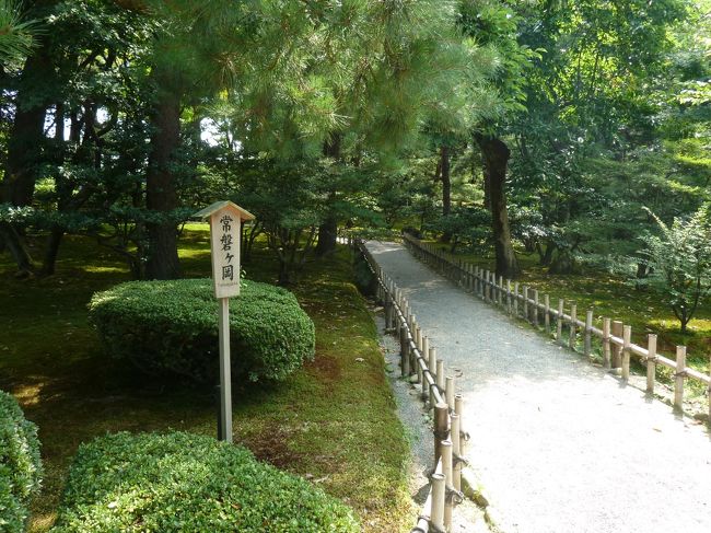 霞ヶ池の南西には見事な松林があり、その先の左手に雁が、池の上を群れを成して飛ぶ様子を模して配置された飛び石が並ぶ、雁行橋がある。
