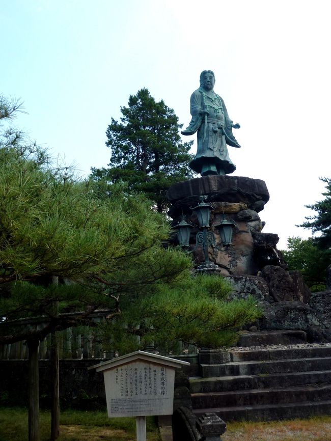 日本武尊の大きな銅像が建つ明治記念の標の奥に、鶺鴒島と名付けられた小島を配置した小池があり、その湖畔に芭蕉の碑は建っていた。