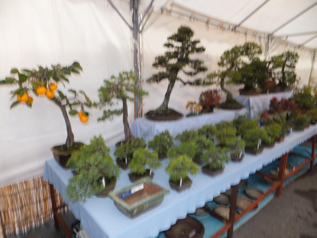 の展示会 盆栽 樹木 灯篭等の石製品 植木鉢