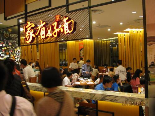 旧正月の春節と五月の国際労働節と並ぶ法廷祝日連休です。国慶節とは中華人民共和国の建国記念日。1949年10月1日に故・毛沢東主席が天安門で建国宣言をした日で7日間のお休みとなる。休暇を利用して故郷に帰る人、国内、海外旅行に行く人など楽しみにしている人が多い。日本に旅行を計画していた人も多くいましたが香港、韓国、ハワイなど他の国に変更したようです。日本人も他の国に変えたようです。来福士広場の地下にあるフードコート。地下鉄人民広場に直結していて南京東路にも近い事から、国慶節の人出も沢山やってきます。フードコートは好きな物が選べて、値段も手頃で、目の前で調理して出来立てが食べられるので人気があります。食事以外に飲み物や、アイスクリーム、ケーキなど軽い飲食に行列が出来ています。