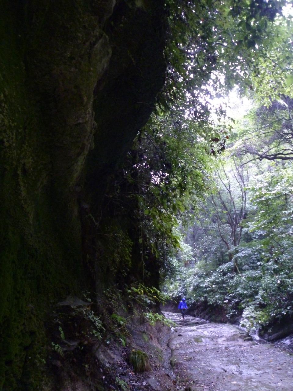 岩畳の道が続いています。両側にある崖や道の岩畳を見ていると、岩盤を削って造られたというのがよく分かります。