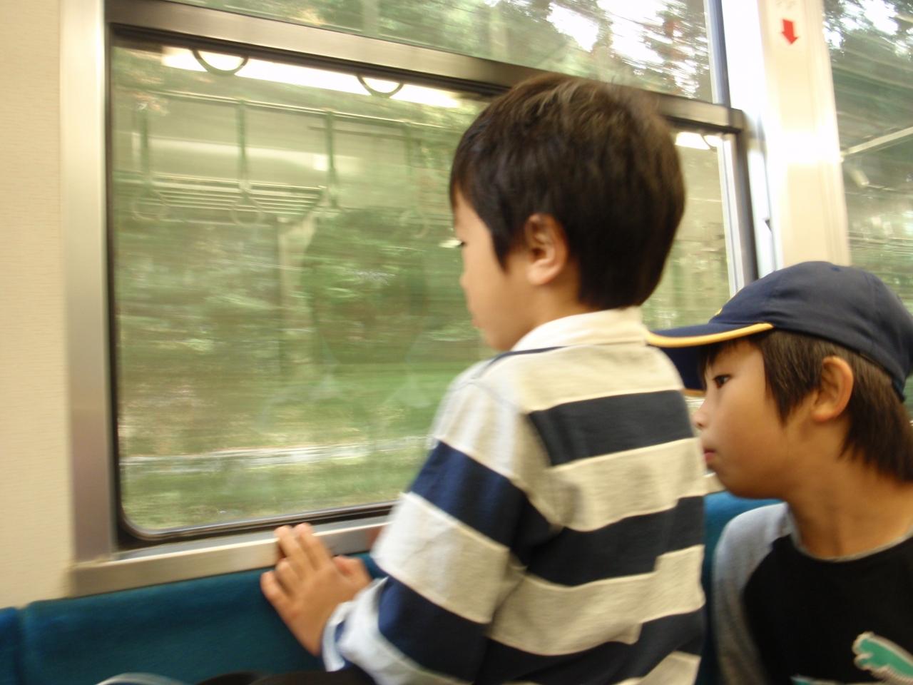 水占い。200円で紙を買い、そばの池の水にその紙をつけると、文字が出てきます。息子2人とも「末吉」。学問は「学成り難し。精進せよ」とのこと・・・・(汗)。がんばってくれよ、息子たち。この後、叡山電車「貴船口」まで歩いて行くのですが、息子たちは、「え〜、電車!?もう一回山に登って同じルートでもどろうよ」と言い出します。子供たちにはとても楽しい場所のようですが、それだけは勘弁して〜〜!!