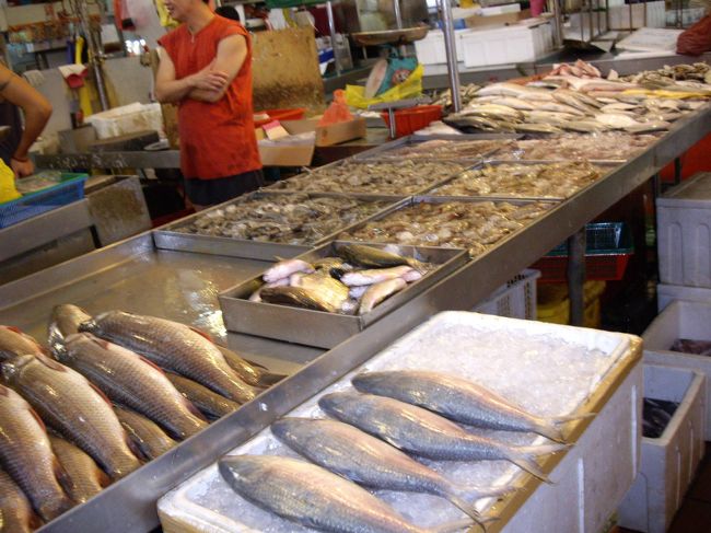 遅い昼食を終え、ホーカーズの奥に進むと、生鮮市場が広がる。
