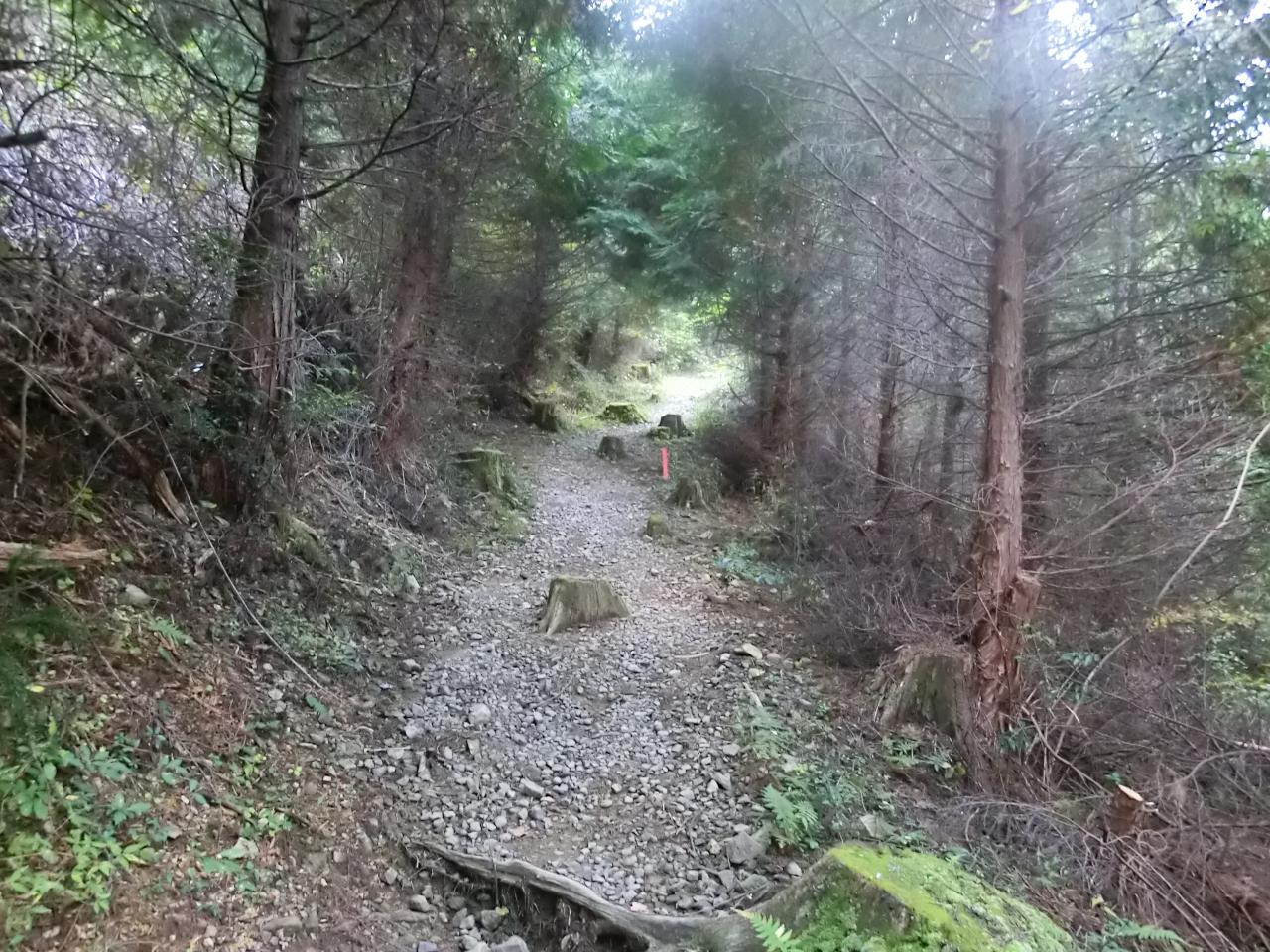 道幅狭く湿っていますが、ほぼフラットで石とか木の根とかがないのでこの辺りは歩きやすかったです。