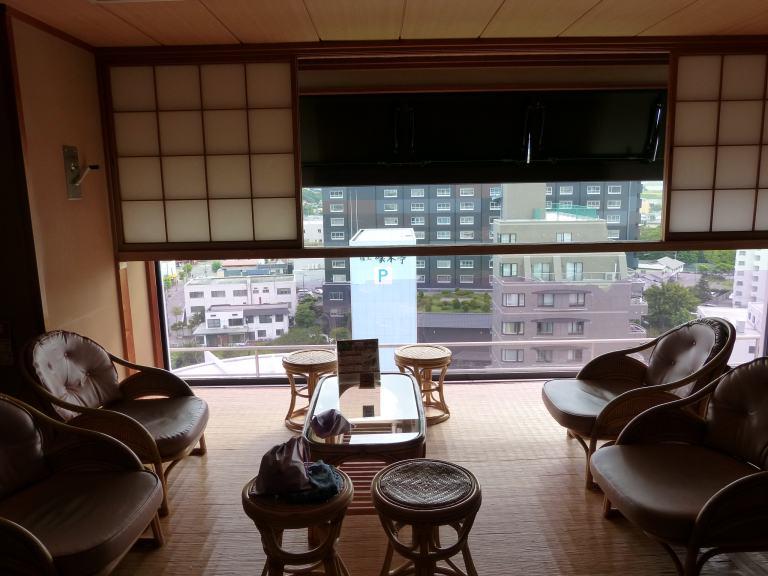 温泉を楽しんだ後、エレベーター横の窓から外を見ると
