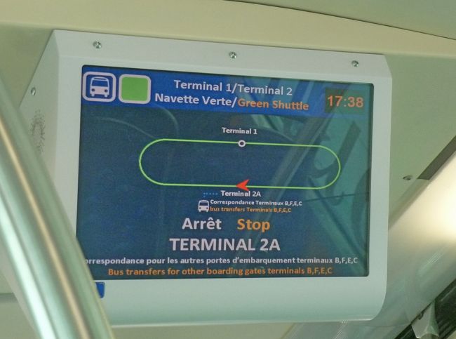 ターミナル2Eからターミナル1に向かうには,ターミナル2Aでバスを乗り継がねばならない.最初のバス