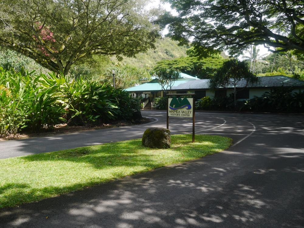 海沿いを走りながら見かけたWaimea Valleyの看板