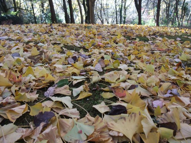 花木の広場から更に奥に進むと、銀杏の林に迷い込みました。