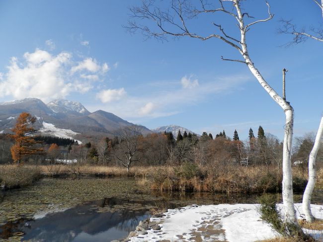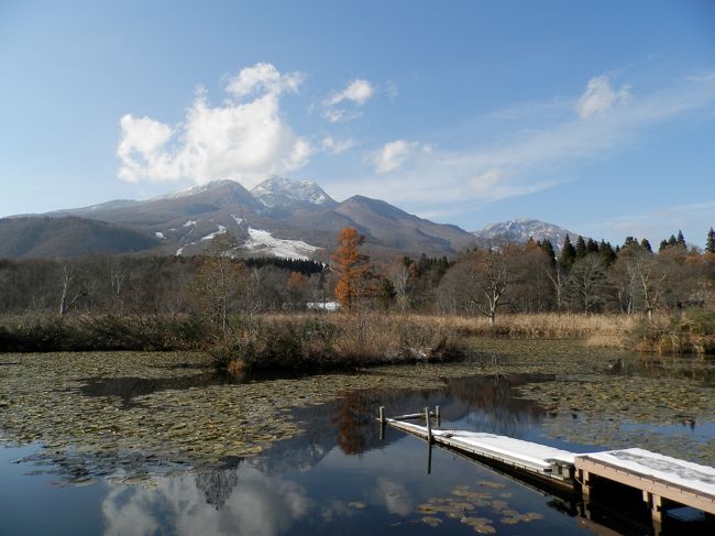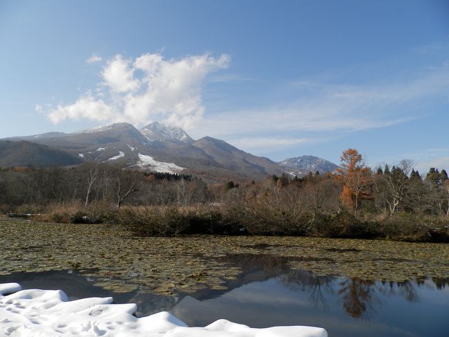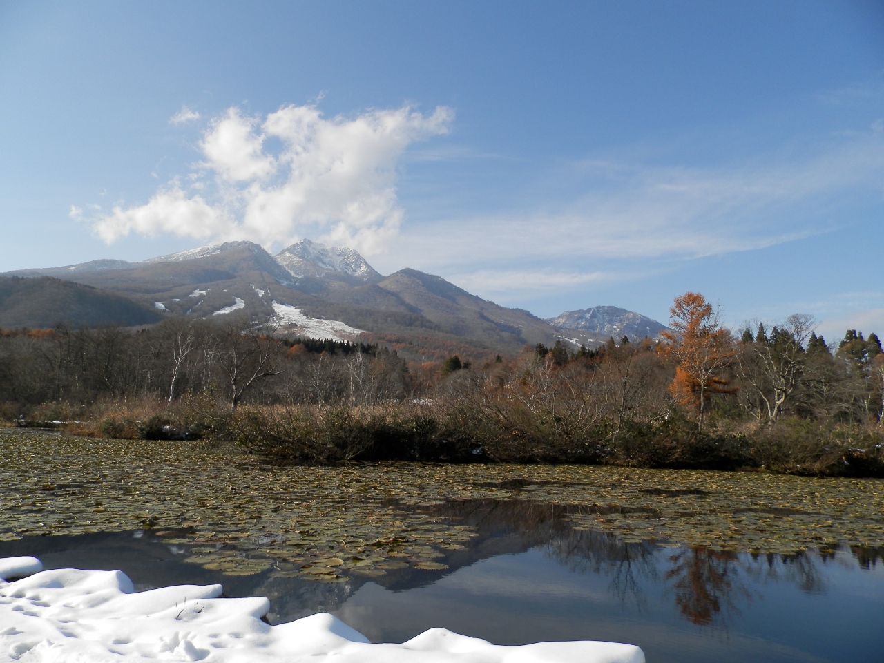 今日は、雪景化粧を始めた妙高山を望む【い も り 池】。