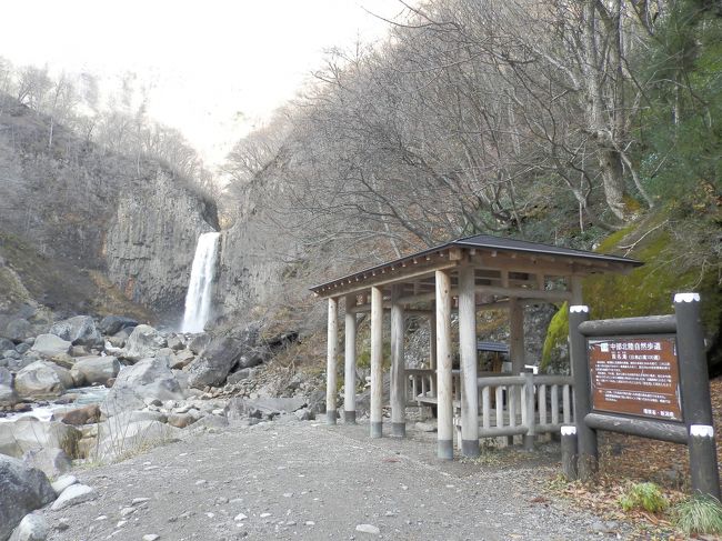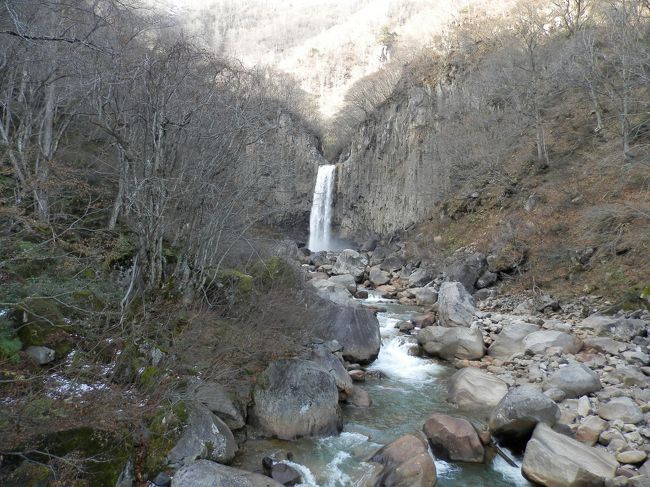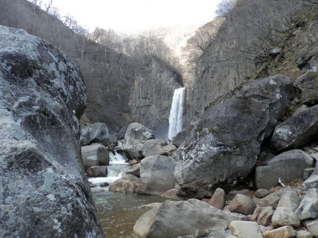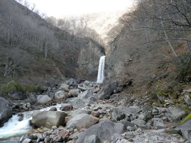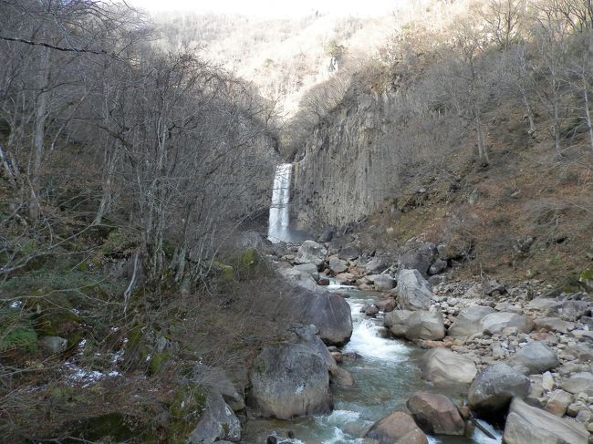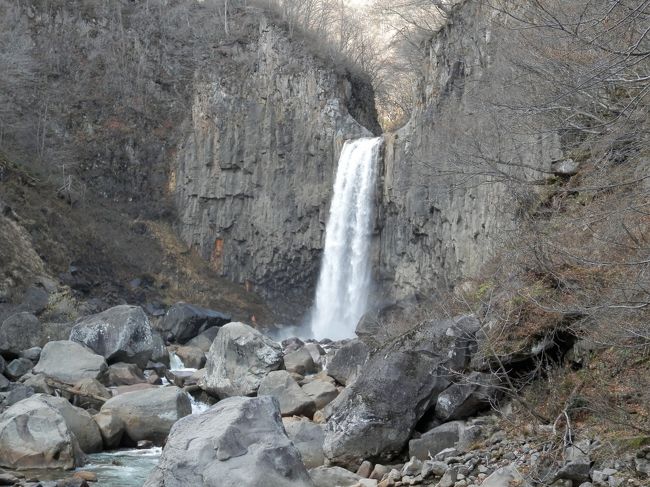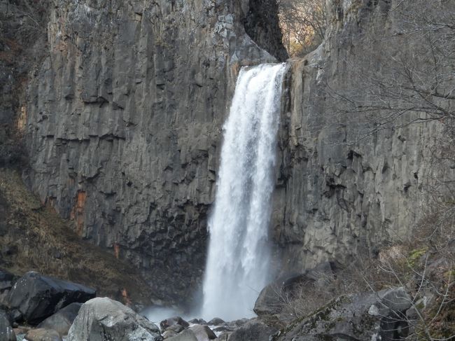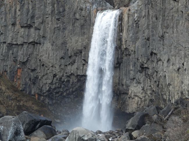 柱状節理の玄武岩壁から水しぶきを上げて落ち込む姿は迫力満点です。