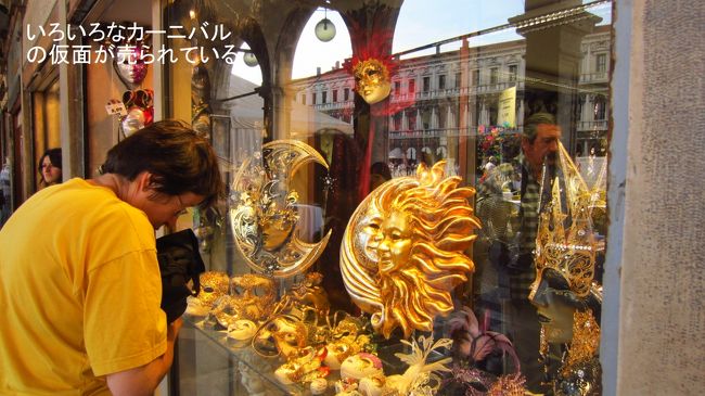 夜の雰囲気をさらに盛り上げるのは、ベネチアのカーニバルに無くてはならないマスク。電燈の光でマスクやお土産が昼間より魅力的に見えてくる。