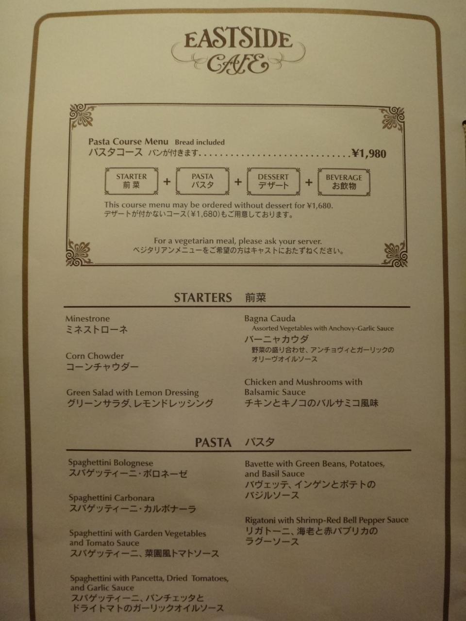 パスタコースメニュー