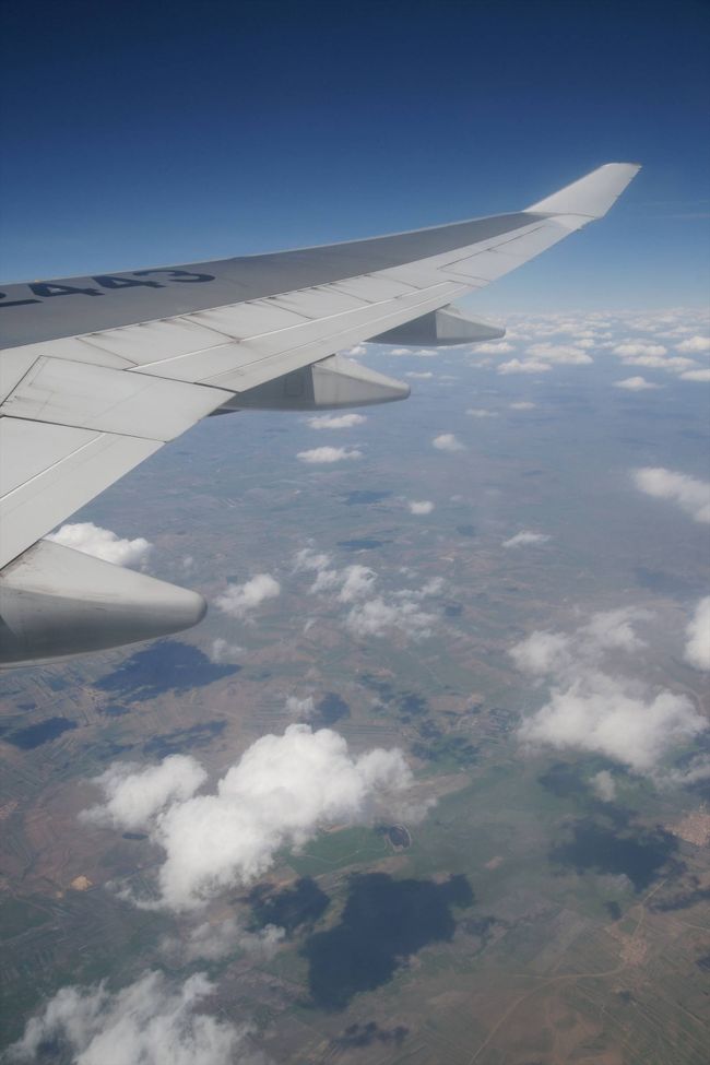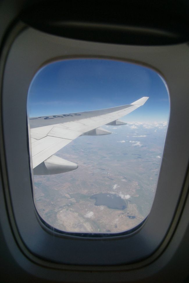飛行機に乗ると、外の暑さから開放されるかな?と思ったんだけど、物凄く暑いんです。エアコンがついていなくて送風オンリーといった感じ。これもエコの一環ですか?でもちょっとやりすぎじゃないの?と思うくらい暑かった。乗客の殆どの人が何かしらの物で扇いで少しでも涼しくなろうとしていたし、乗務員を捕まえてはエアコンの件を聞いていた様な気がする。結局この状態はエンジンが始動してからも暫く続きました。