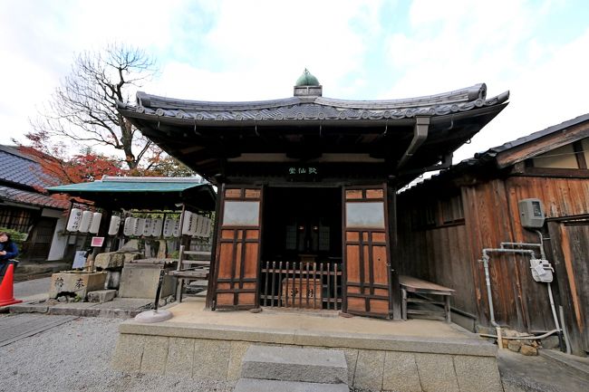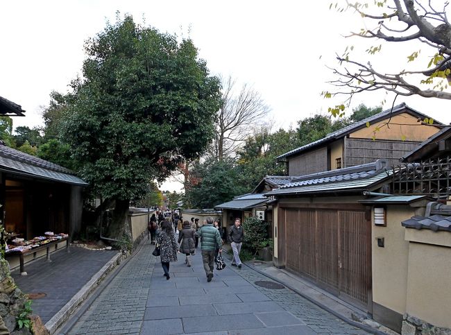 1509 円山公園から,大谷祖廟,京都祇園堂などをみつつ,ねねの道への角のところの芭蕉堂でひとやすみ.1杯1000円の抹茶を飲む,お菓子,煎茶,芭蕉せんべいなどがついていて,暖かいところでゆっくり休めたので高いと思わなかった.いまは季節営業のようだ.