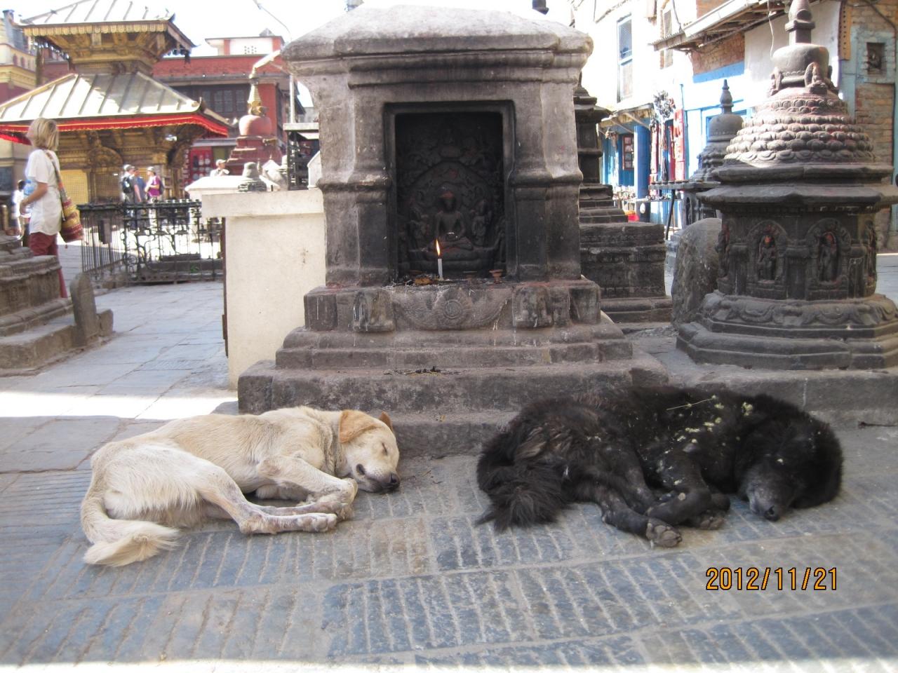 夕食をとってからダルバール広場まで散策途中の一こまです。 ガネーシュとカーラ・バイラブです。 この様に街中にある小さな神様も生活に密着していてます。