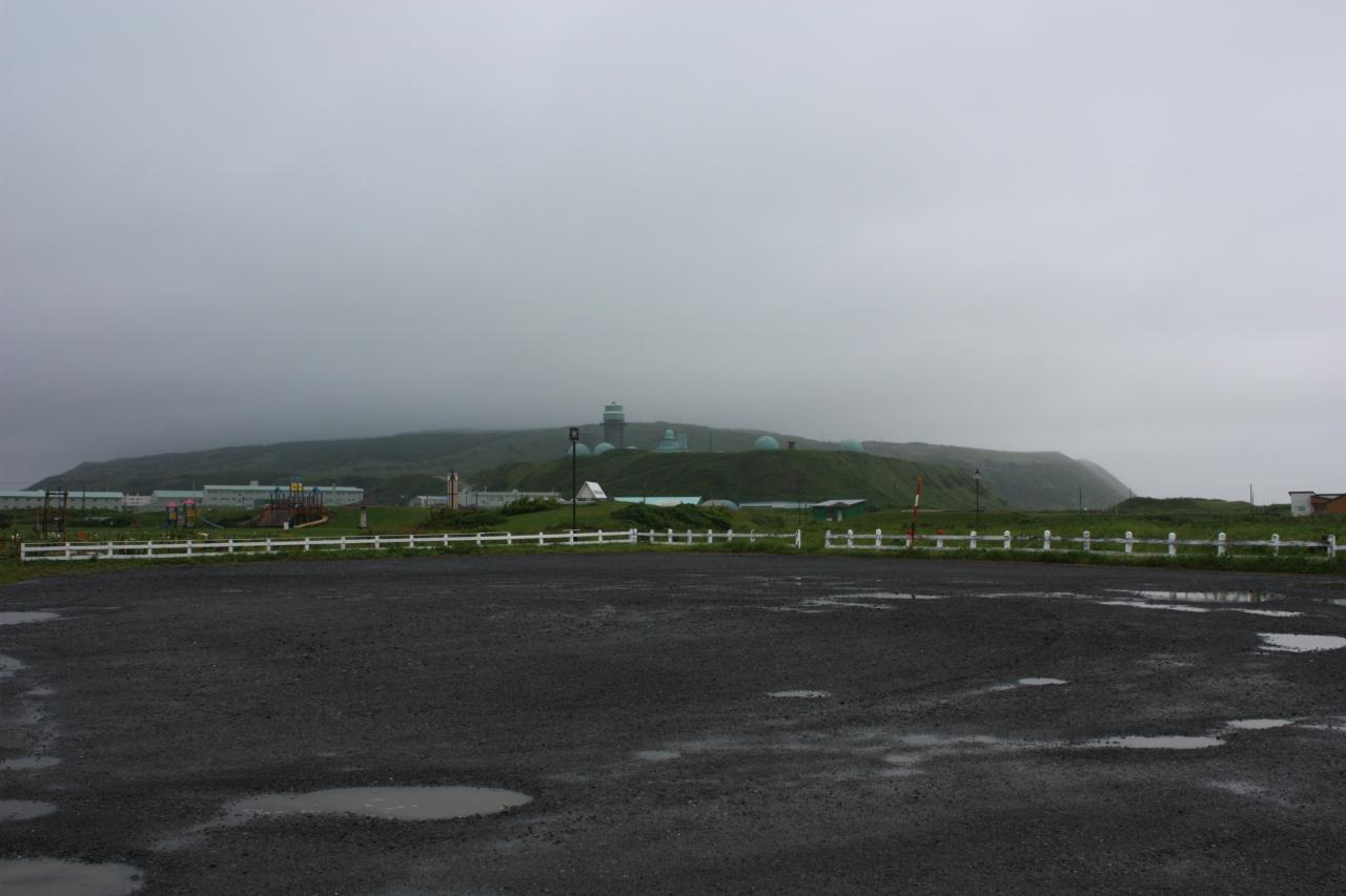 前日行かなかったノシャップ岬に行く前に、北防波堤ドームに行きました。雨は上がっていましたが、曇り空でした。防波堤ドームの下にテントを張り、野宿している人達がいました。 -