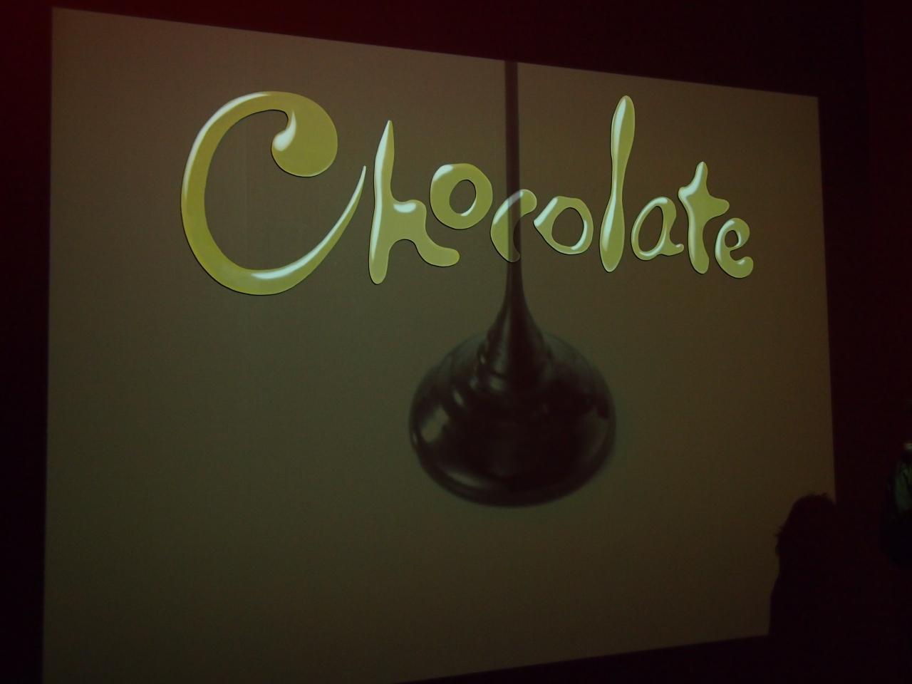 スクリーンに映し出される、チョコレートがとろ〜っととろけている映像。 これを見ただけでも甘そうだ!