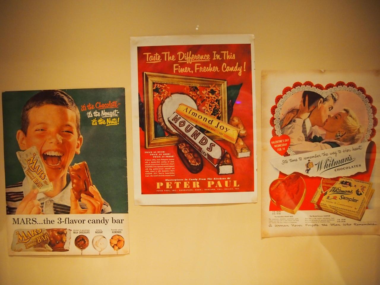 ハーシーズ(HERSHEY'S)のチョコレートマシン(自販機?!)、しかも1セントって、いつの時代!? 詳しくは書かれていなかったので、多分コレクター、個人所有の借り物が飾られているコーナーだったのかな…。 -