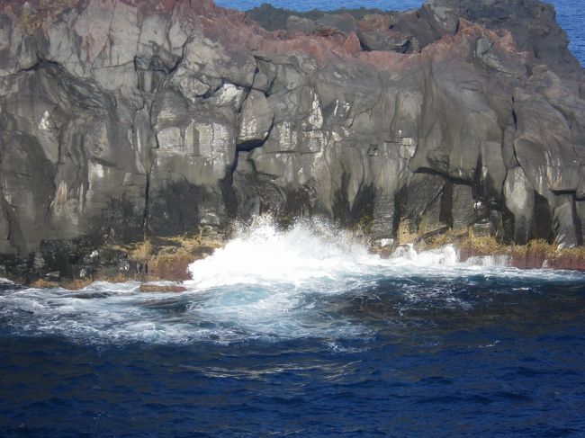 かなり強い波が岩肌に押し寄せています。