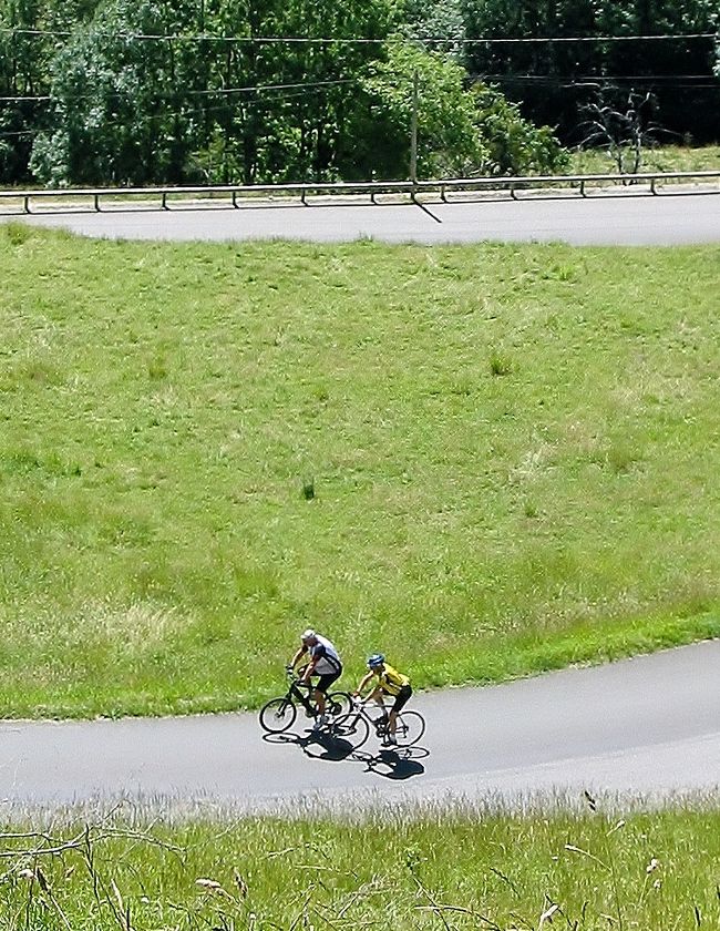 ペアのサイクリストが、ノロノロと登ってきてます、ごくろうさんです。