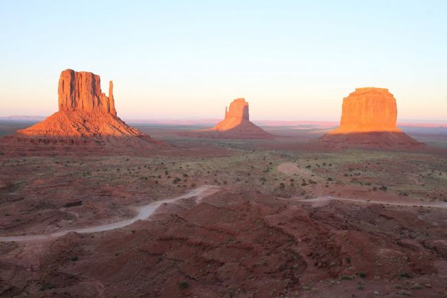 モニュメントバレーのグルーディングロッジに宿泊し、翌朝の景色です