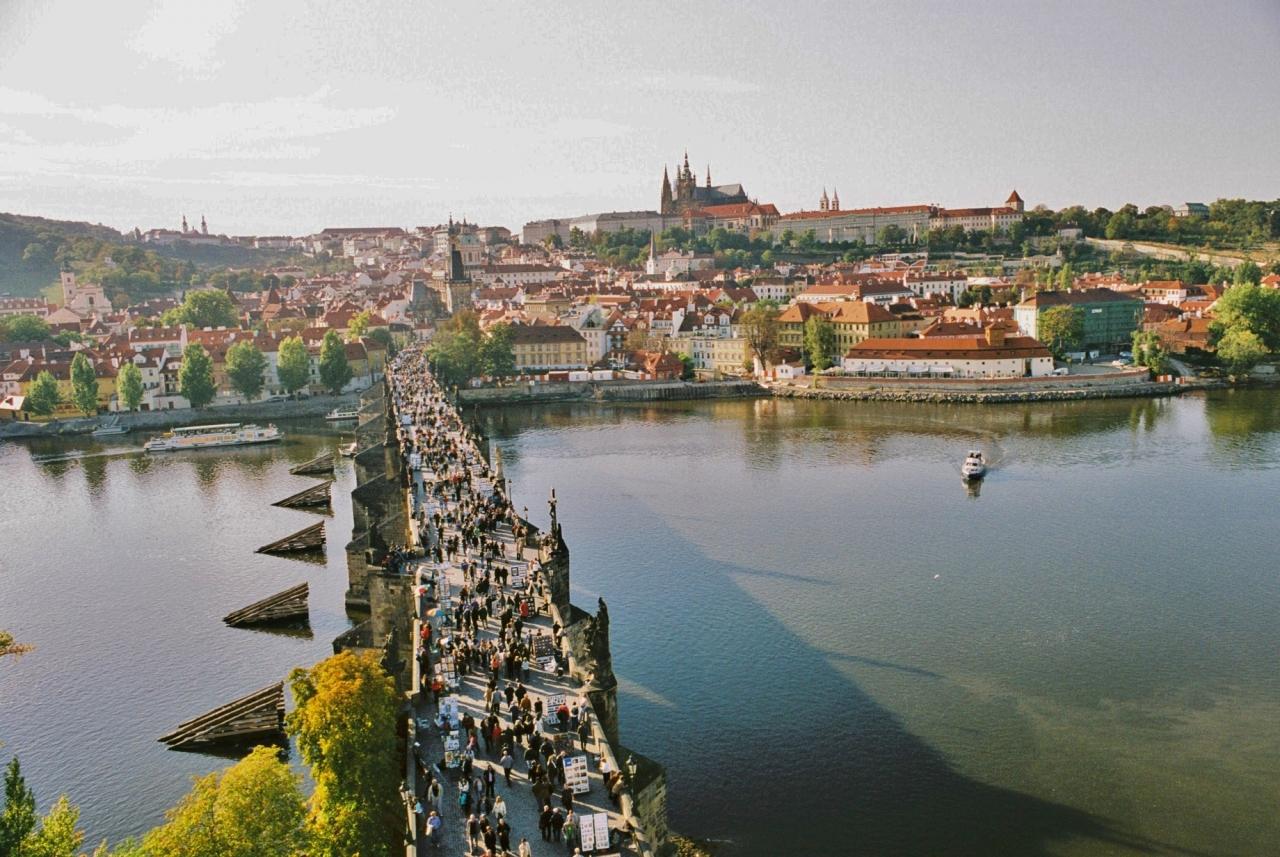橋は1357年、カレル四世の命により建設が開始され、完成したのはヴァーツラフ四世統治の1402年。統治の架橋建設では非常に高度な技術を要した石橋は幅9.5m 長さ516mというヨーロッパ中世建築の頂点に建つ傑作である。 -
