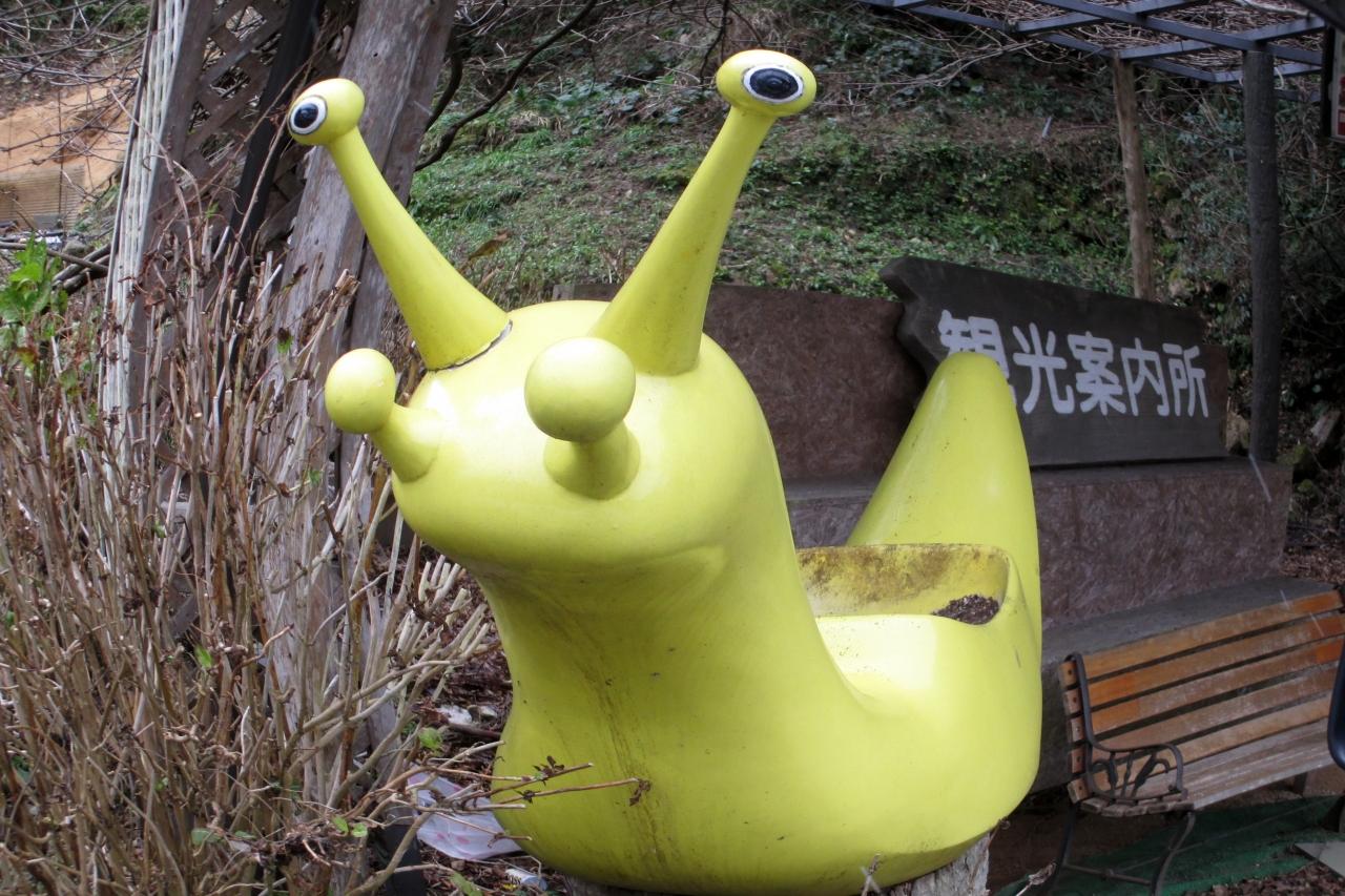 デンデンムシさんがお迎え〜アジサイが有名な滝だそうです。 -