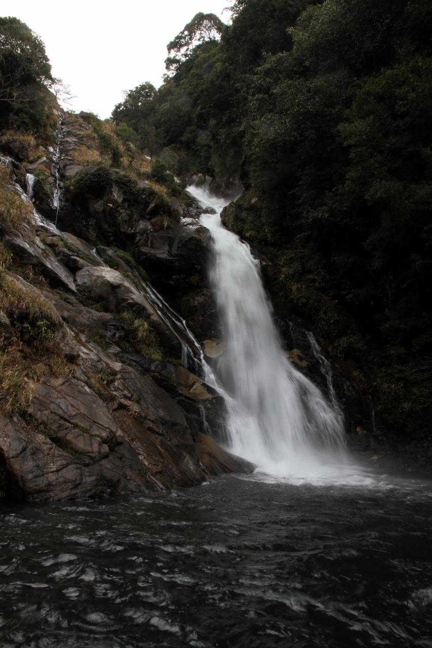 いえいえ、三脚なしの手持ち撮りです。アップしてみるとどれもピンが合っていないんですよ。空が木々で覆われている山中の滝ではなかったので空が明るく、ISOは100、1/80秒でした。露出補正は+1です。脇を固めて撮りました。
