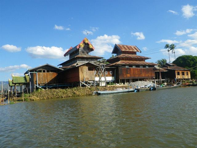 ヘーホー空港から車で40分ほどの船着場へ行って,そこからボートでインレー湖へ。
