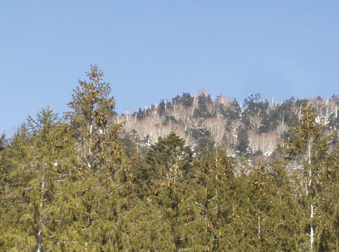 こちらは、熊が樹皮の堅い木の生長点を食べてしまった跡。