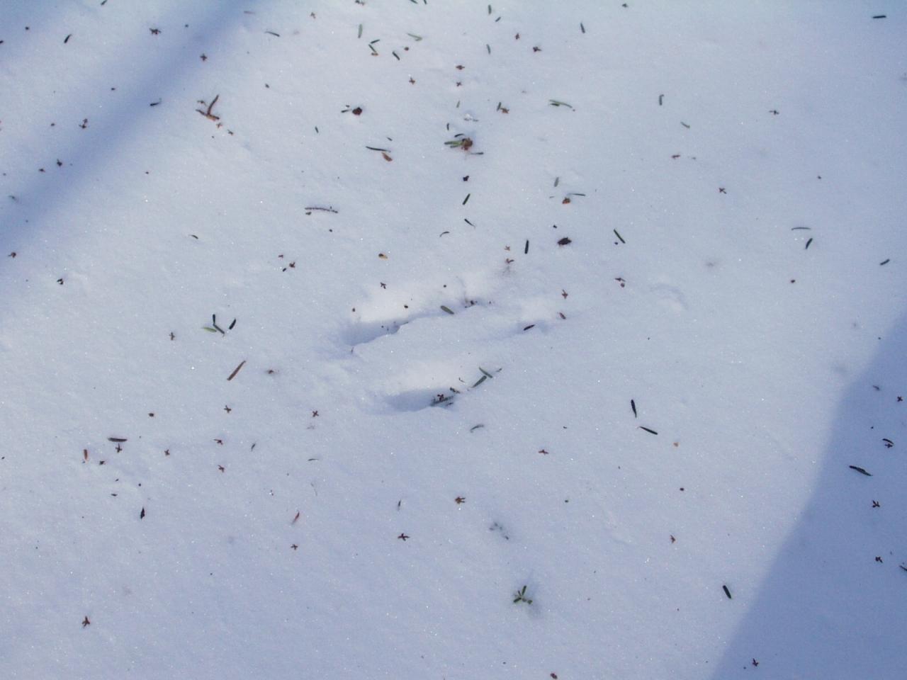 この、細長いゾウリ型・2つ組の足跡は、テンのものだそう。 -