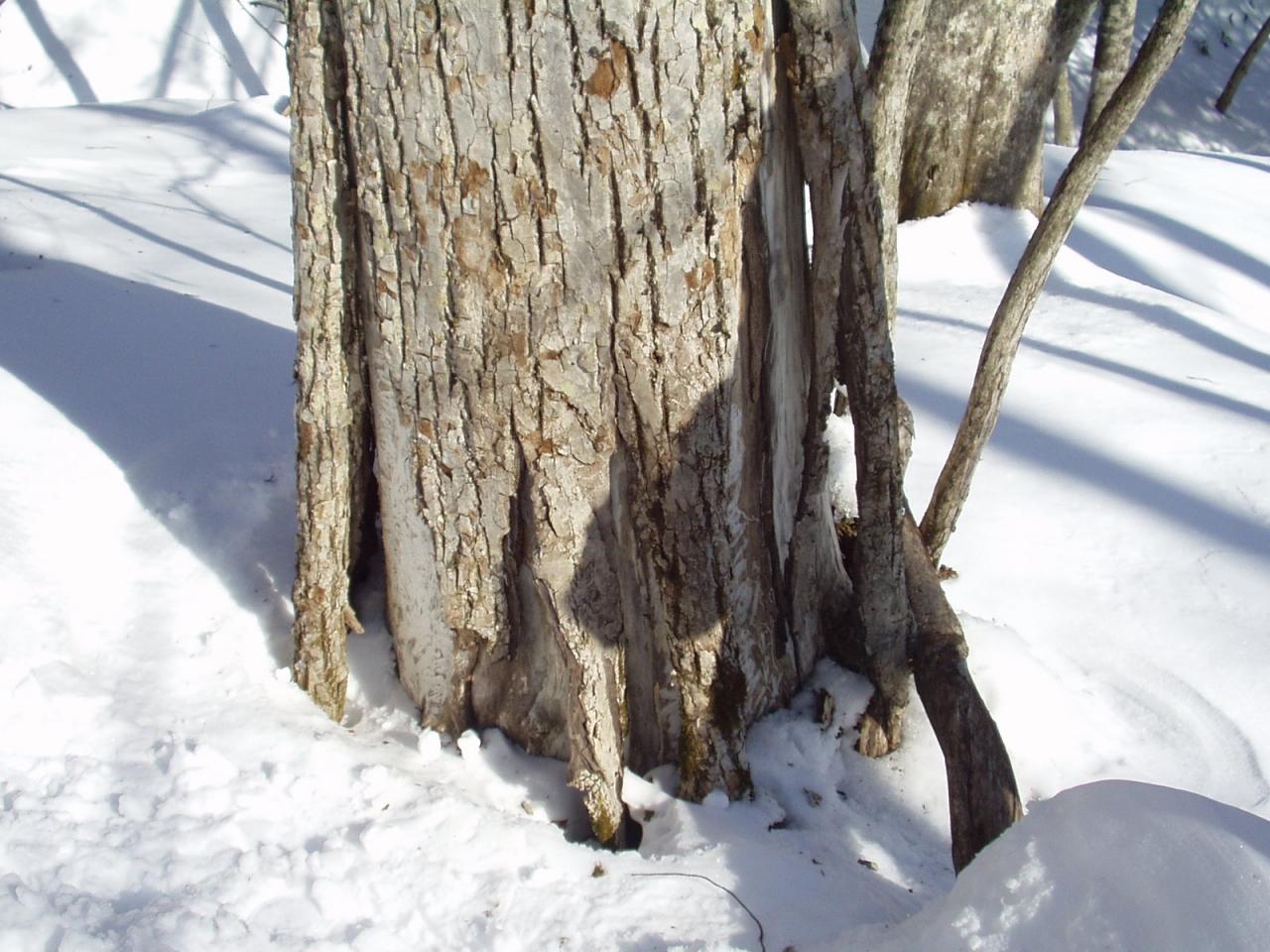 こちらは、シカが樹皮をかじった跡&角を研いだ跡!
