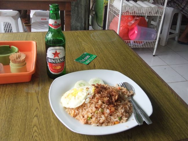 ナシゴレンは10,000ルピア(100円くらい)、ビールは13,000ルピアでした。