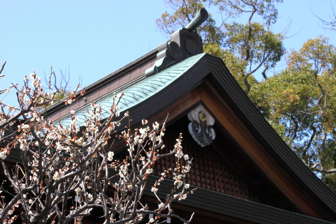三島大社では梅の花が満開で早咲きの紅い桜が印象的でした。