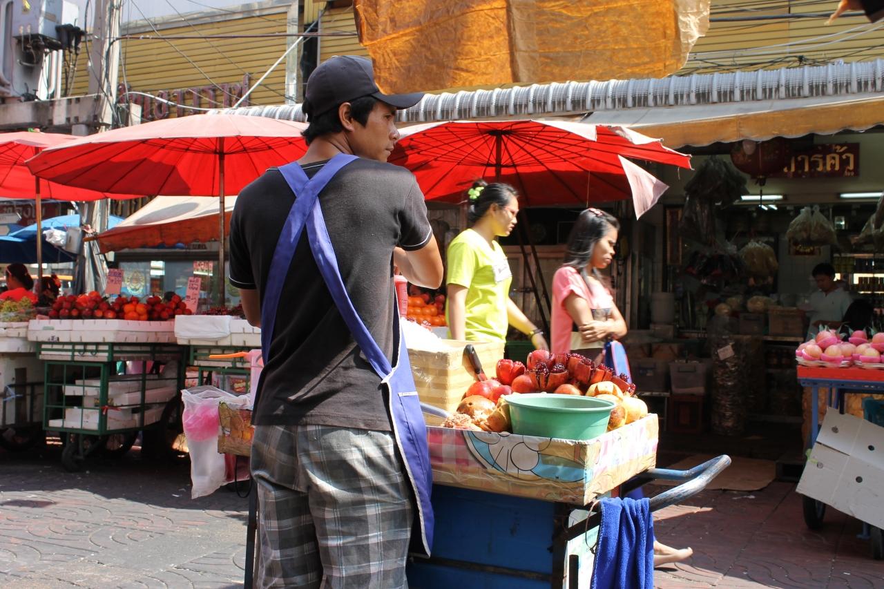 目の前にはザクロを売っている移動屋台のの兄ちゃん。炎天下、日除けもなしにがんばっていた。食っている間、客は1人もなし。ごくろうさんです。
