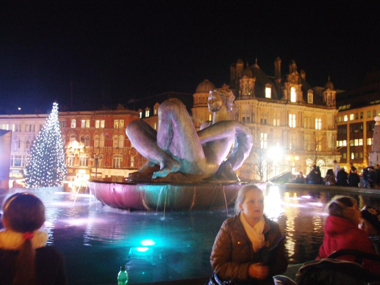 クリスマスマーケットは、バーミンガム市庁舎前の広場で開いています。